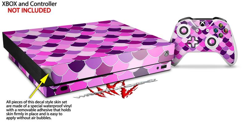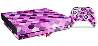 Skin Wrap for XBOX One X Console and Controller Scales Pink Purple