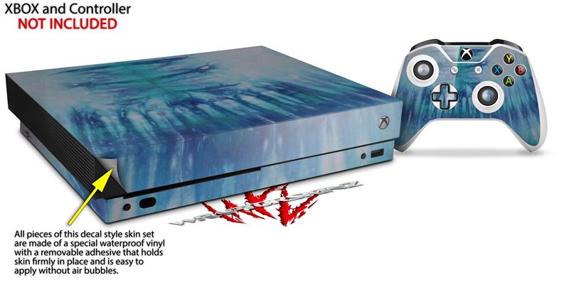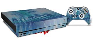 Skin Wrap for XBOX One X Console and Controller Tie Dye All Blue Stripes