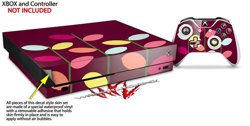Skin Wrap for XBOX One X Console and Controller Plain Leaves On Burgundy