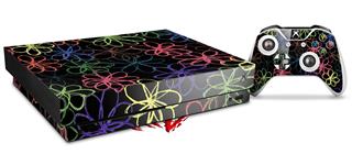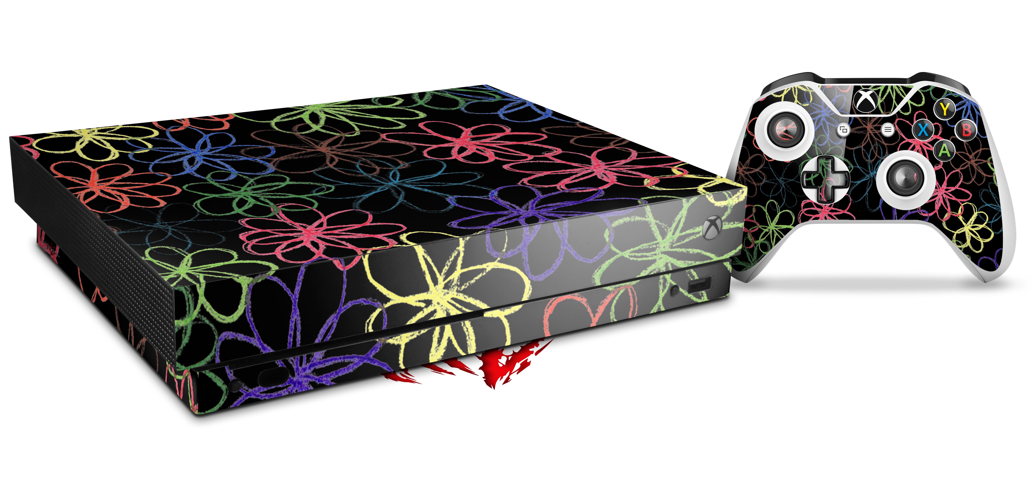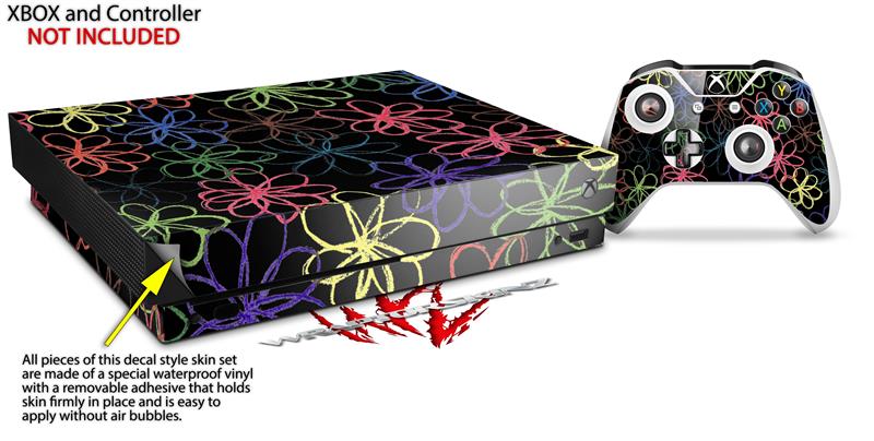 Skin Wrap for XBOX One X Console and Controller Kearas Flowers on Black
