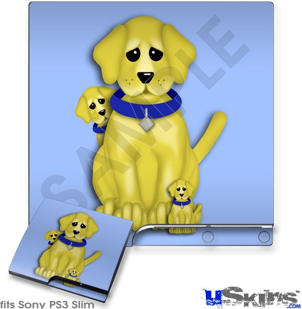 Decal Skin compatible with Sony PS3 Slim Puppy Dogs on Blue
