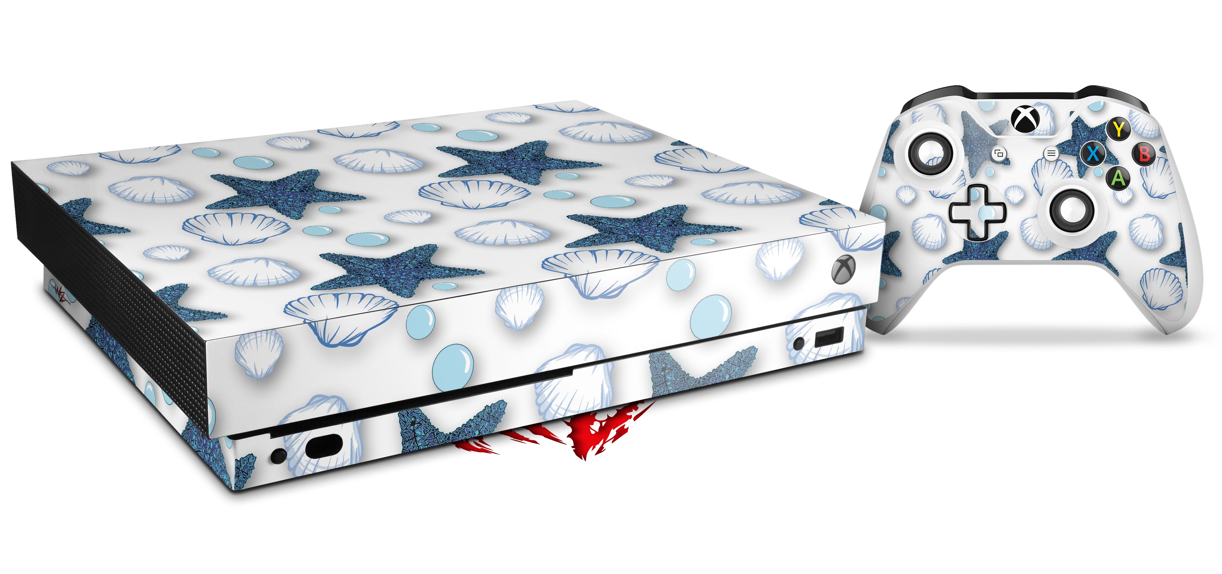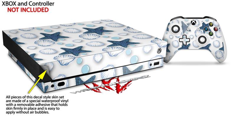 Skin Wrap for XBOX One X Console and Controller Starfish and Sea Shells White