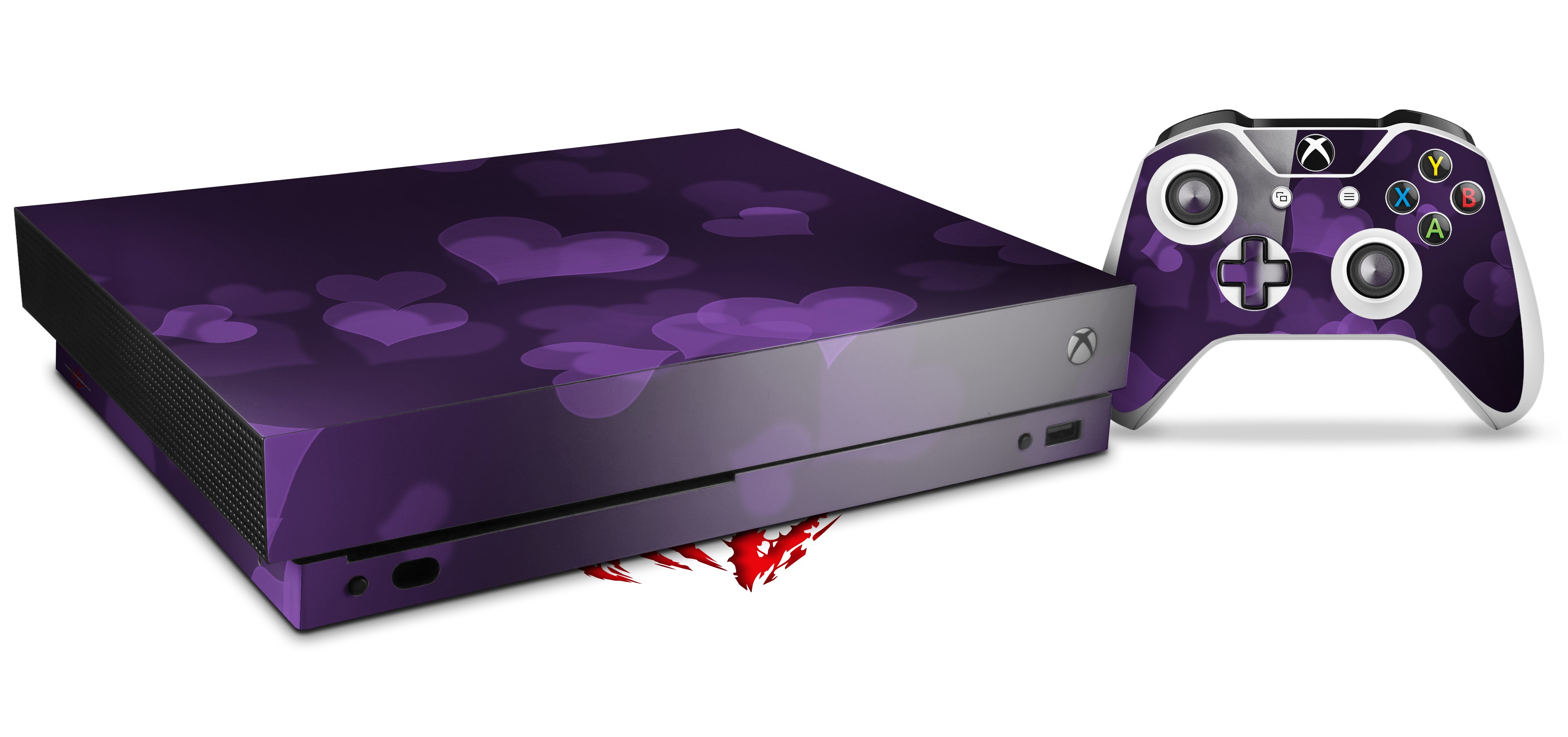 Skin Wrap for XBOX One X Console and Controller Bokeh Hearts Purple