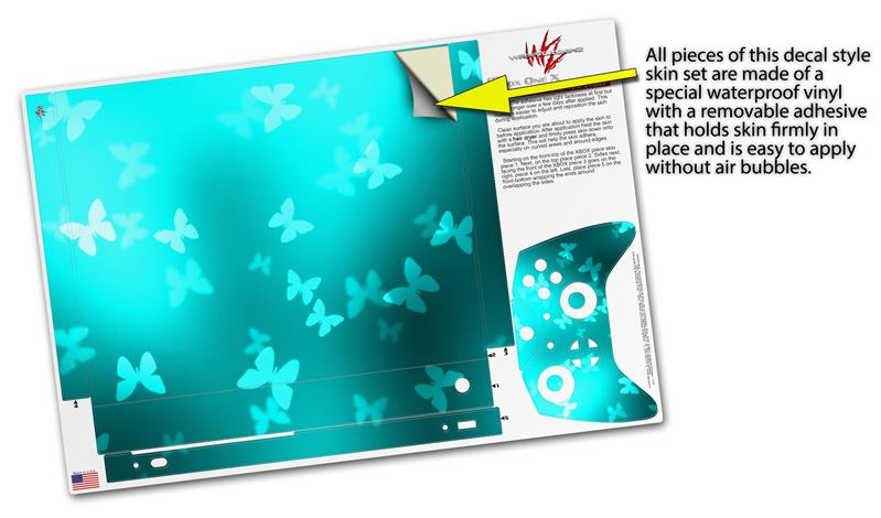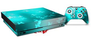 Skin Wrap for XBOX One X Console and Controller Bokeh Butterflies Neon Teal