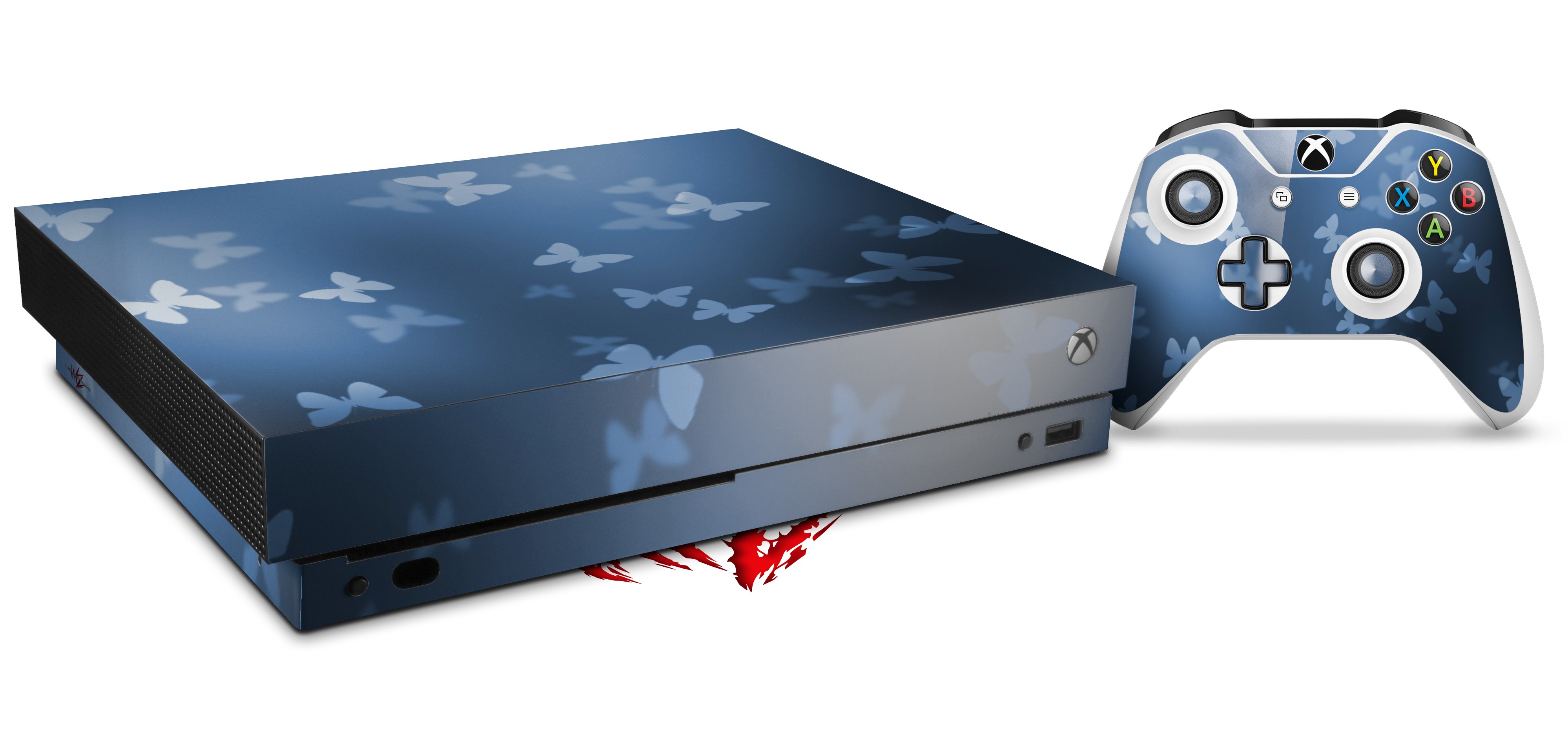 Skin Wrap for XBOX One X Console and Controller Bokeh Butterflies Blue