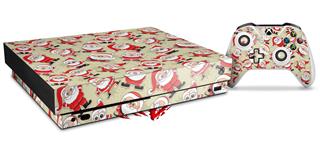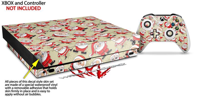 Skin Wrap for XBOX One X Console and Controller Lots of Santas
