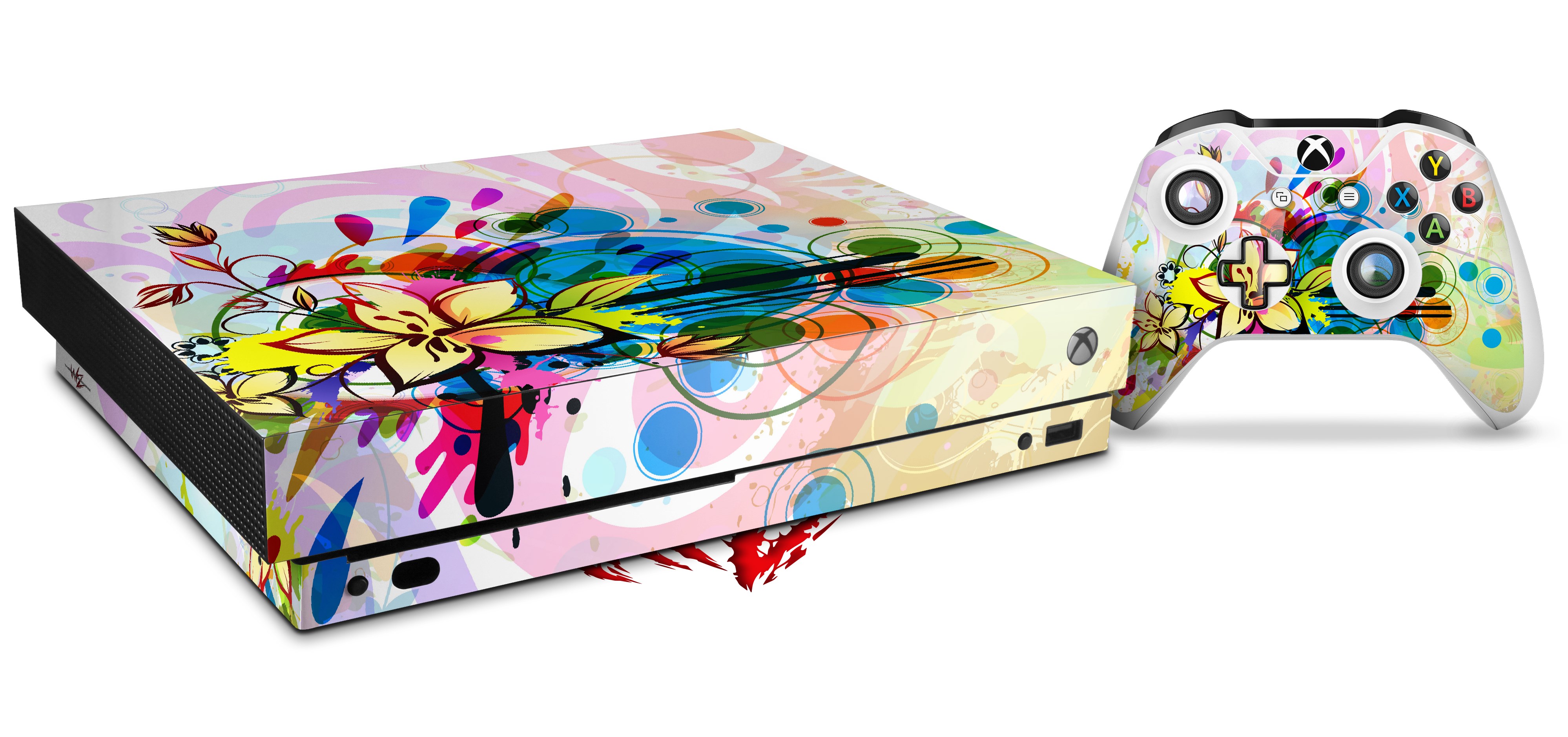 Skin Wrap for XBOX One X Console and Controller Floral Splash