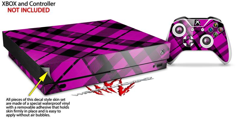 Skin Wrap for XBOX One X Console and Controller Pink Plaid