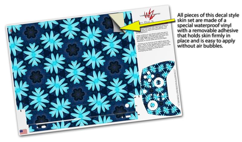 Skin Wrap for XBOX One X Console and Controller Abstract Floral Blue