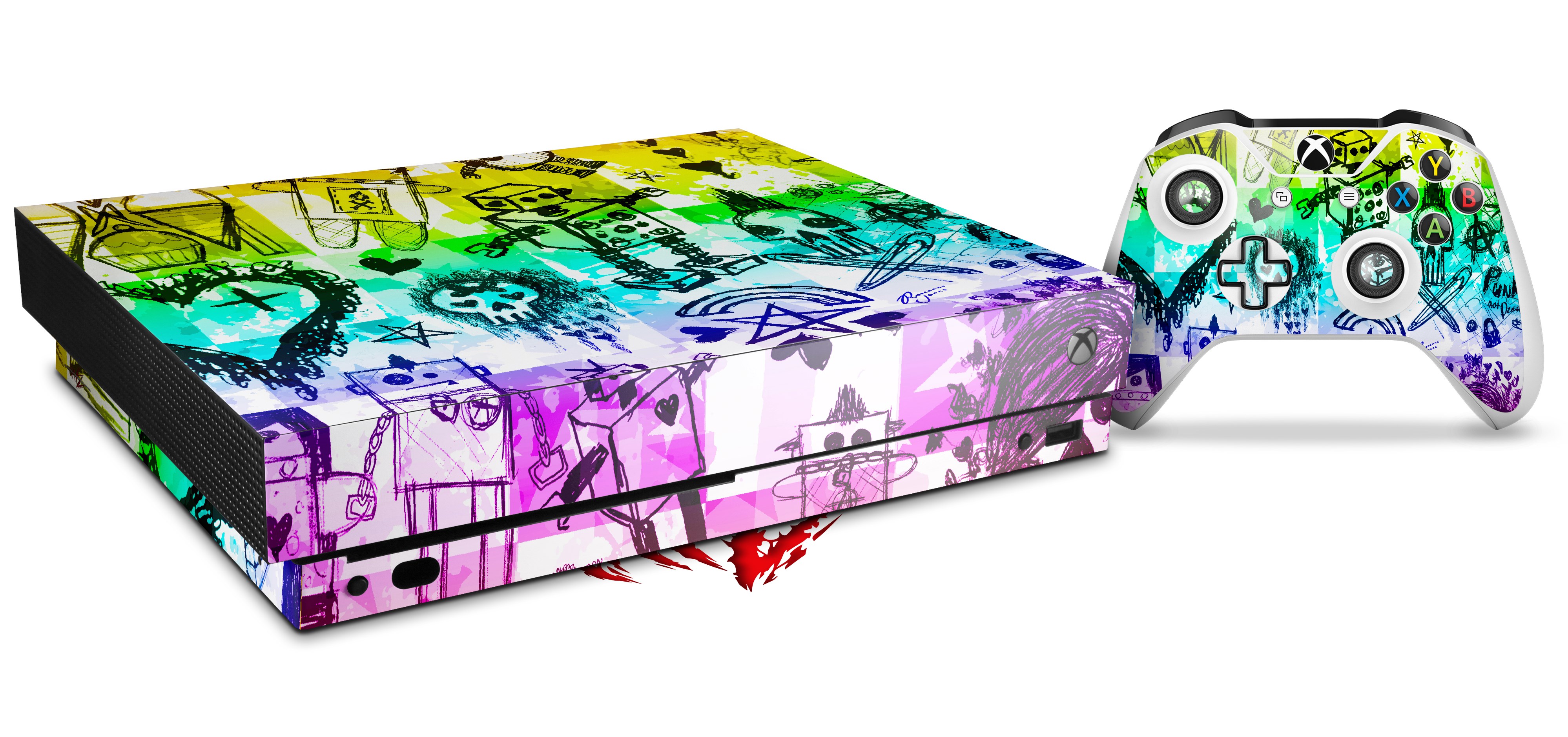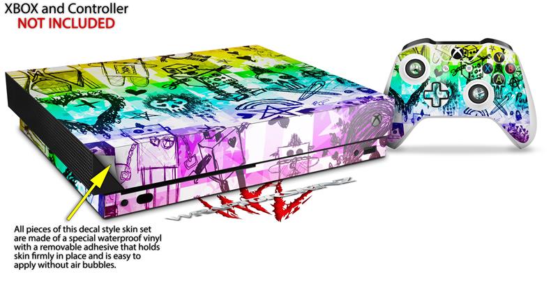 Skin Wrap for XBOX One X Console and Controller Scene Kid Sketches Rainbow