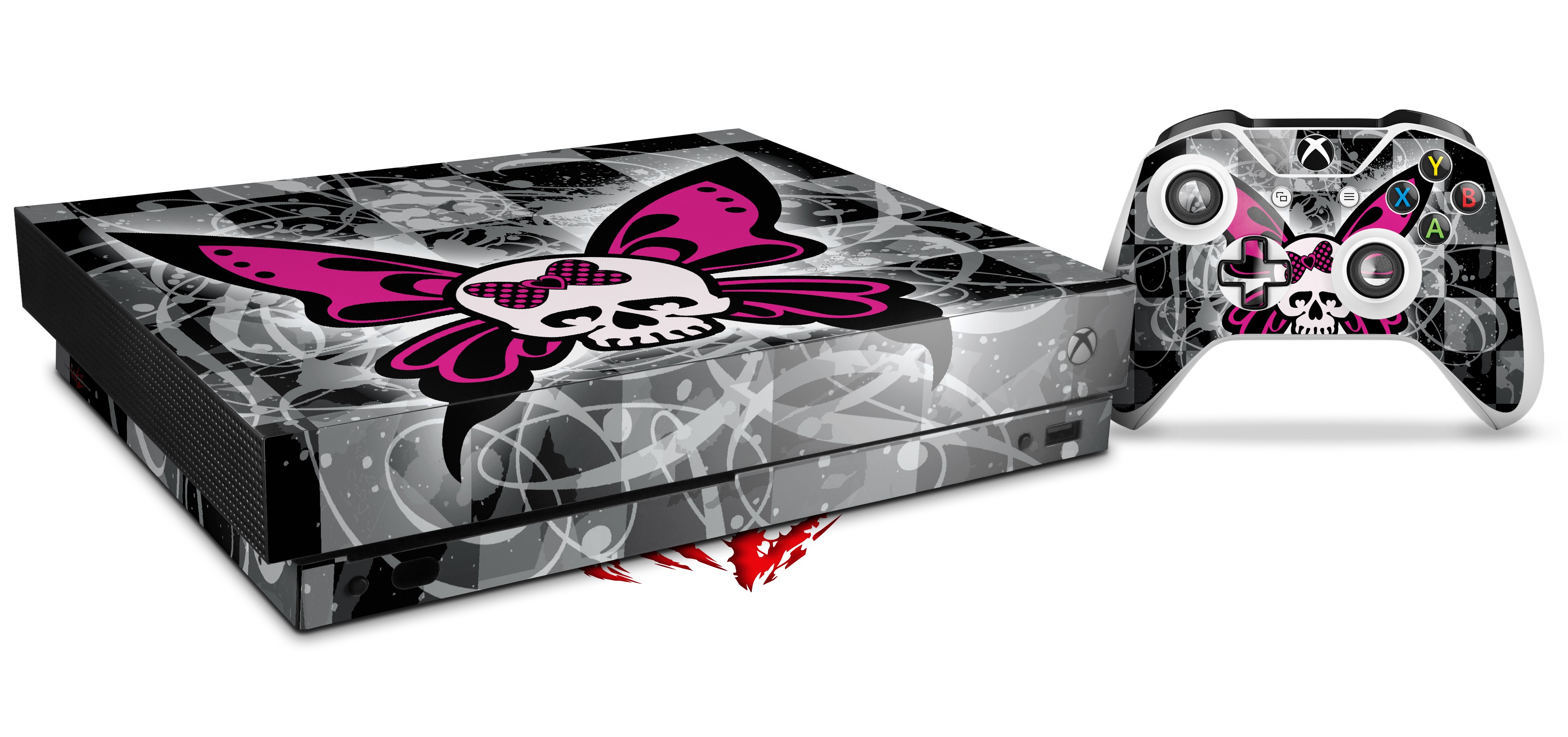 Skin Wrap for XBOX One X Console and Controller Skull Butterfly
