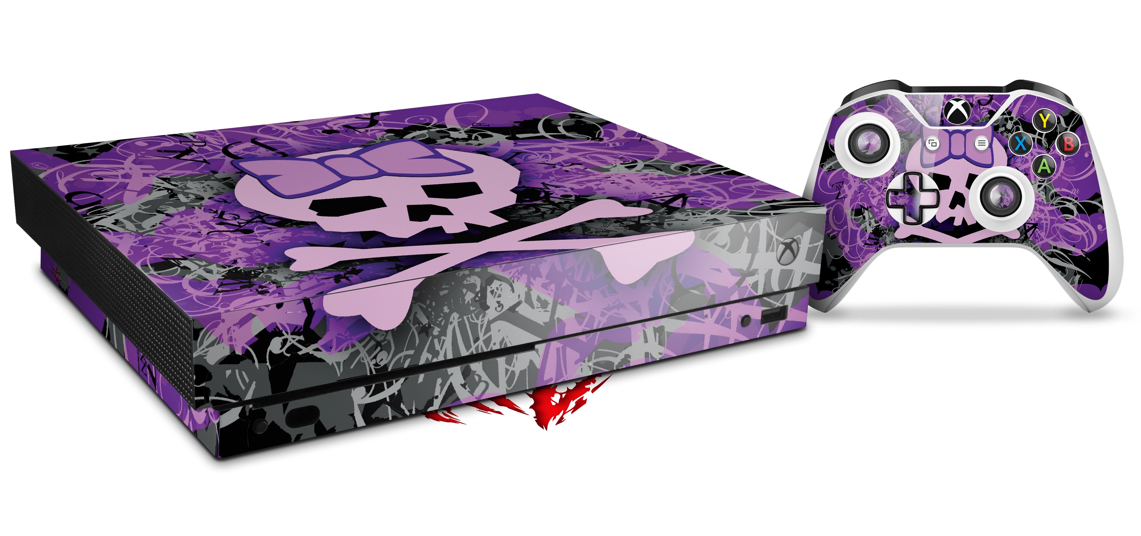 Skin Wrap for XBOX One X Console and Controller Purple Girly Skull