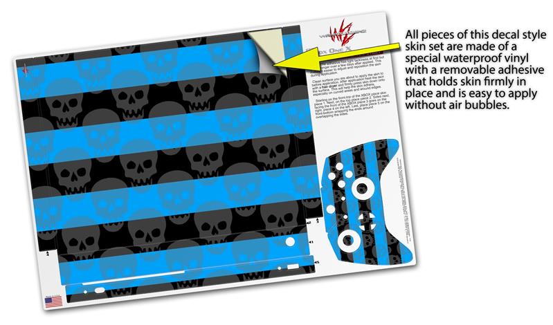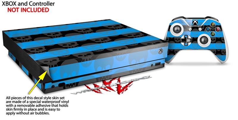 Skin Wrap for XBOX One X Console and Controller Skull Stripes Blue