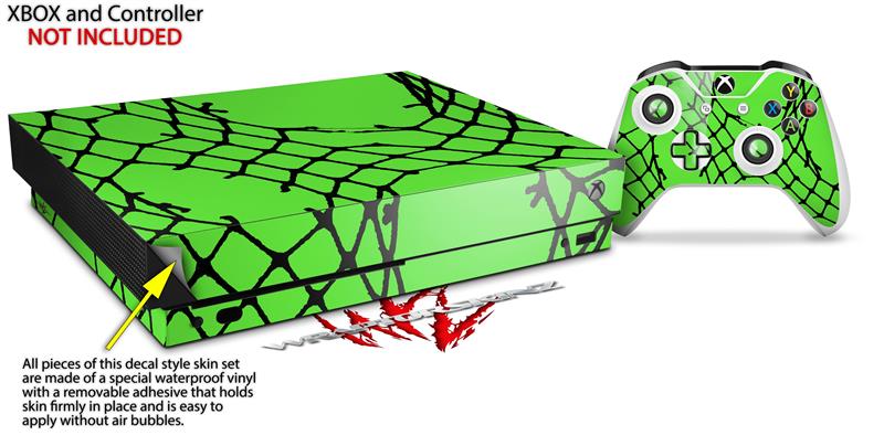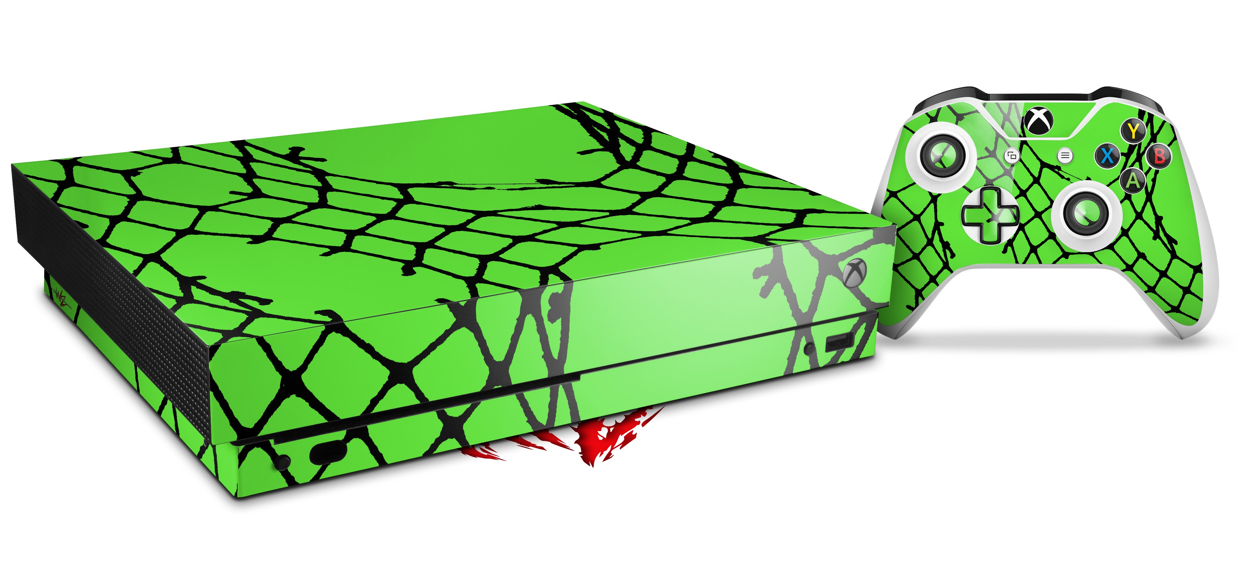 Skin Wrap for XBOX One X Console and Controller Ripped Fishnets Green