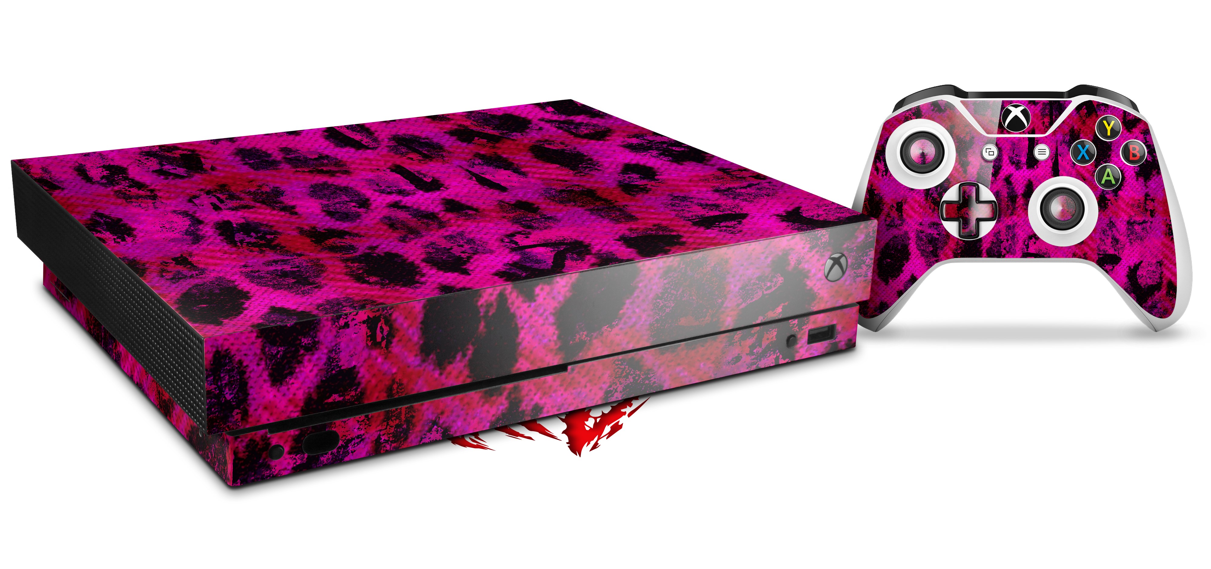 Skin Wrap for XBOX One X Console and Controller Pink Distressed Leopard