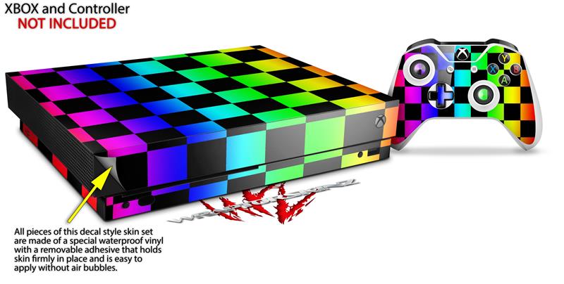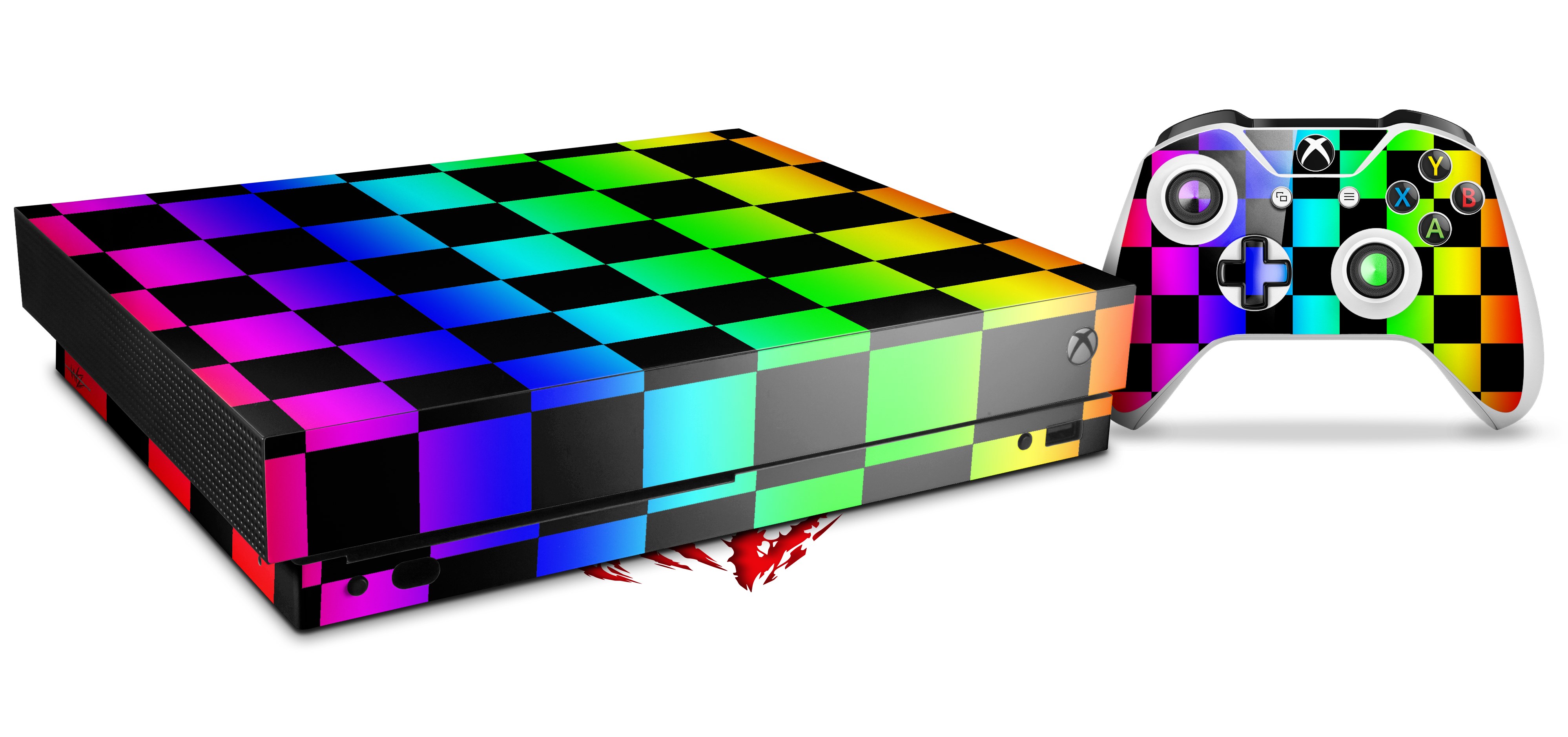 Skin Wrap for XBOX One X Console and Controller Rainbow Checkerboard