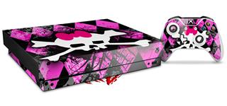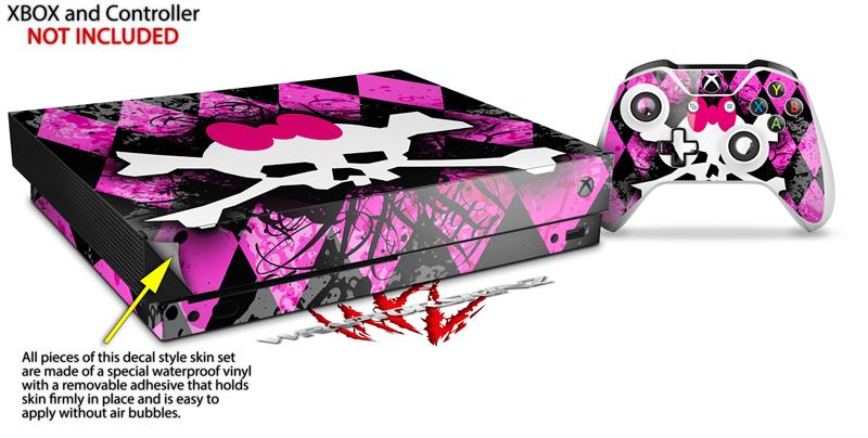 Skin Wrap for XBOX One X Console and Controller Pink Diamond Skull
