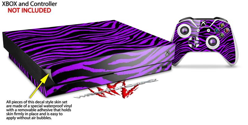 Skin Wrap for XBOX One X Console and Controller Purple Zebra