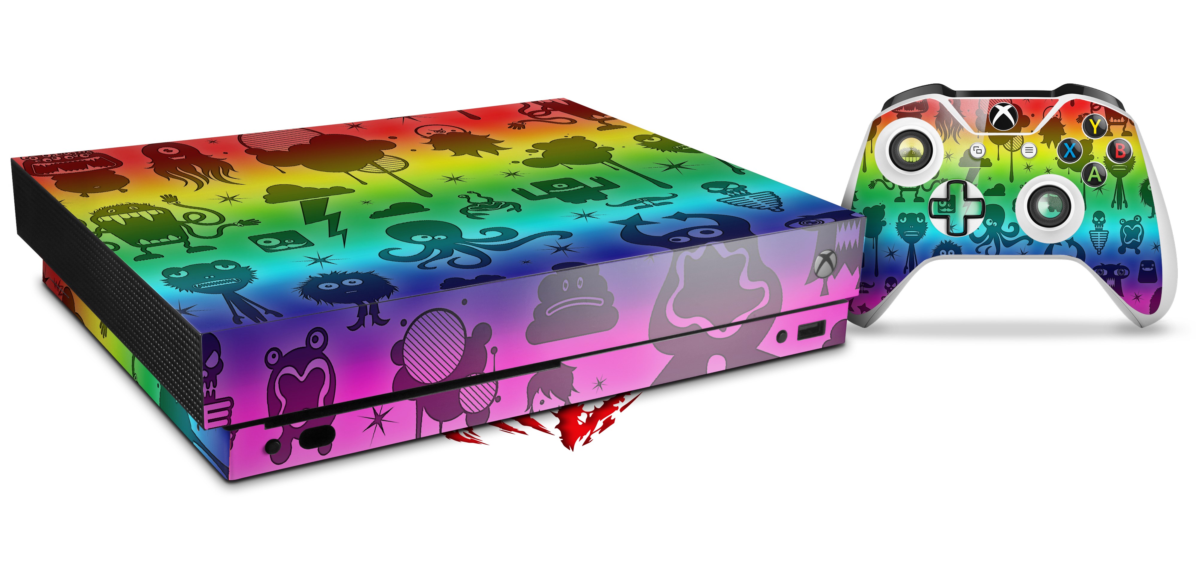 Skin Wrap for XBOX One X Console and Controller Cute Rainbow Monsters
