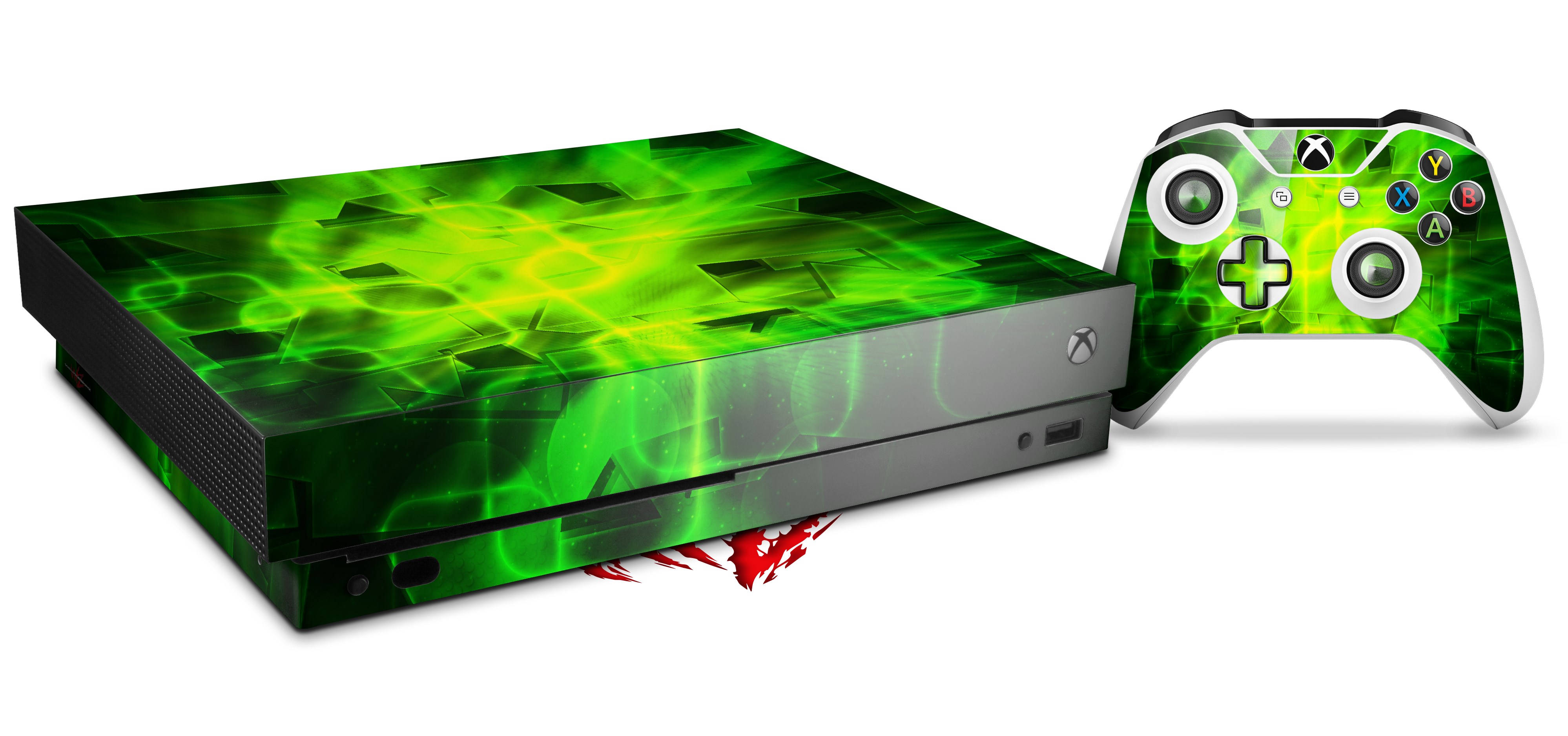 Skin Wrap for XBOX One X Console and Controller Cubic Shards Green