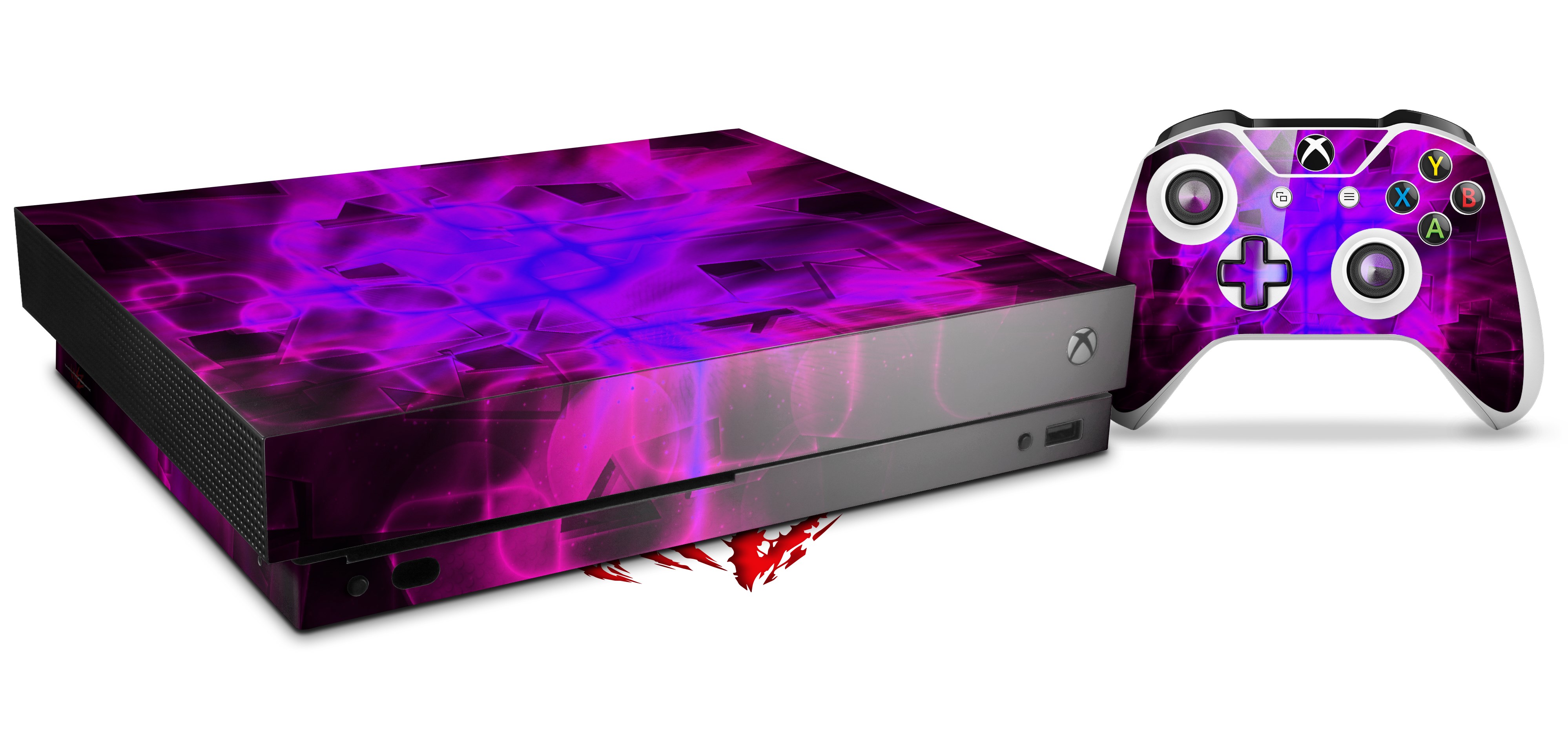 Skin Wrap for XBOX One X Console and Controller Cubic Shards Pink