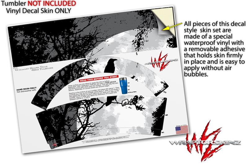 WraptorSkinz® skin wraps for Walmart Ozark Trail Tumblers are printed using superb photo quality designs and vibrant colors printed with special fade resistant inks that last even in direct sun for years. WraptorSkinz® are a composite of two layers of commercial grade materials. The bottom layer is a soft, flexible vinyl with a special removable adhesive that is easily positioned, applied without air bubbles. Next we print the bottom layer with UV protected, fade resistant inks that deliver superb photo quality designs in vibrant colors. Finally we bond a professional grade laminate over the entire skin adding a glossy protective finish.