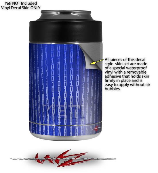Skin Decal Wrap for Yeti Colster, Ozark Trail and RTIC Can Coolers - Binary Rain Blue (COOLER NOT INCLUDED)