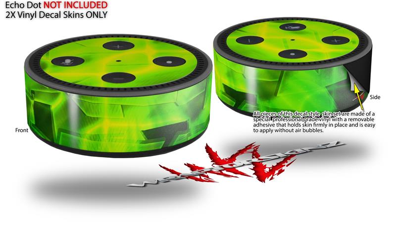 Skin Wrap Decal Set 2 Pack for Amazon Echo Dot 2 - Cubic Shards Green (2nd Generation ONLY - Echo NOT INCLUDED)