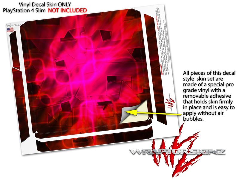 Vinyl Decal Skin Wrap compatible with Sony PlayStation 4 Slim Console Cubic Shards Red (PS4 NOT INCLUDED)