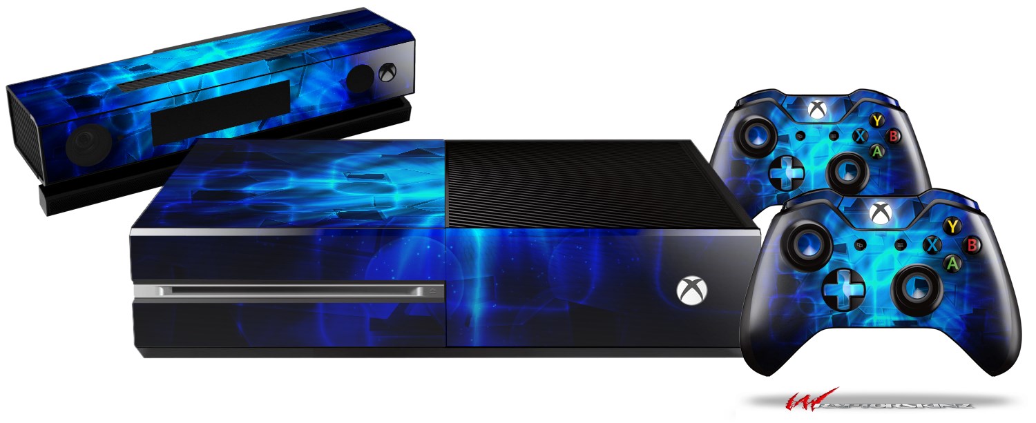 Cubic Shards Blue - Holiday Bundle Decal Style Skin fits XBOX One Console Original, Kinect and 2 Controllers (XBOX SYSTEM NOT INCLUDED)
