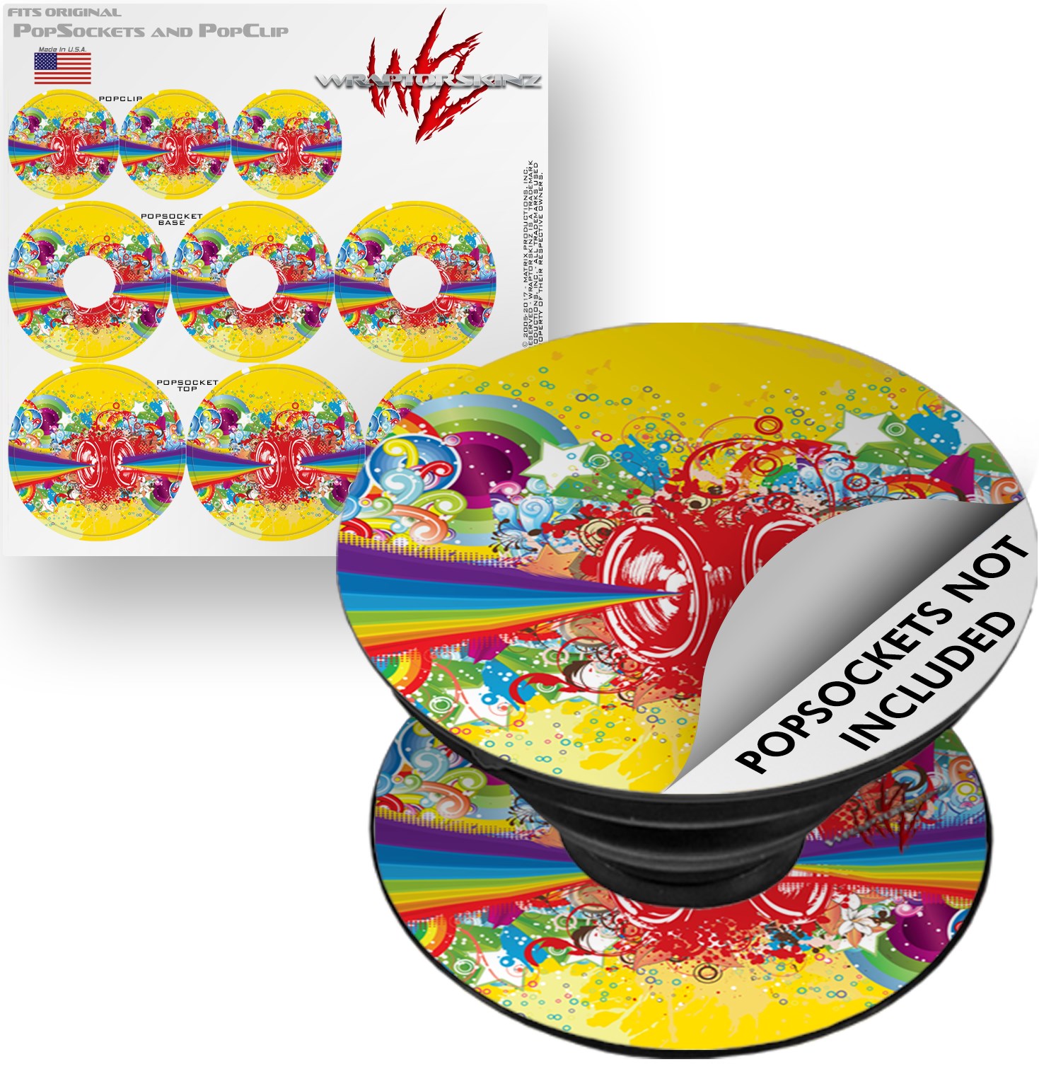 WraptorSkinz® skin decals are printed using superb photo quality designs and vibrant colors printed with special fade resistant inks that last even in direct sun for years. WraptorSkinz® are a composite of two layers of commercial grade materials. The bottom layer is a soft, flexible vinyl with a special removable adhesive that is easily positioned, applied without air bubbles. Next, we print the bottom layer with UV protected, fade resistant inks that deliver superb photo quality designs in vibrant colors. Finally, we bond a professional grade laminate over the entire skin adding a glossy protective finish. This WraptorSkinz skin accessory is not affiliated with, endorsed by and is in no way connected with the PopSocket products or brand.