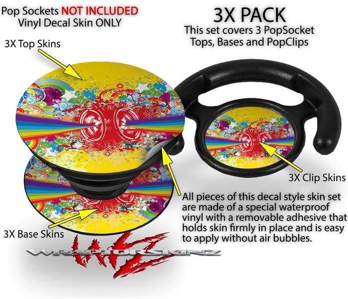 Decal Style Vinyl Skin Wrap 3 Pack for PopSockets Rainbow Music (POPSOCKET NOT INCLUDED)