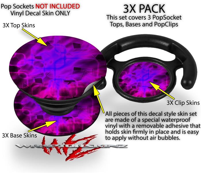 Decal Style Vinyl Skin Wrap 3 Pack for PopSockets Cubic Shards Pink (POPSOCKET NOT INCLUDED)