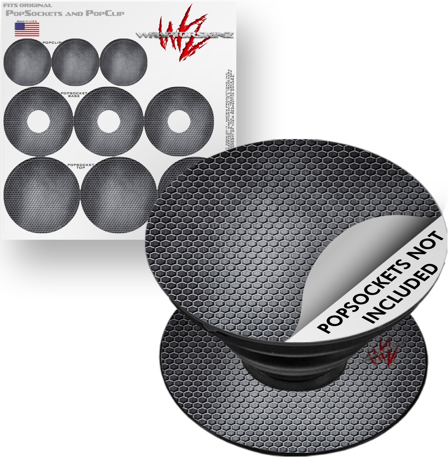 Decal Style Vinyl Skin Wrap 3 Pack for PopSockets Mesh Metal Hex (POPSOCKET NOT INCLUDED)