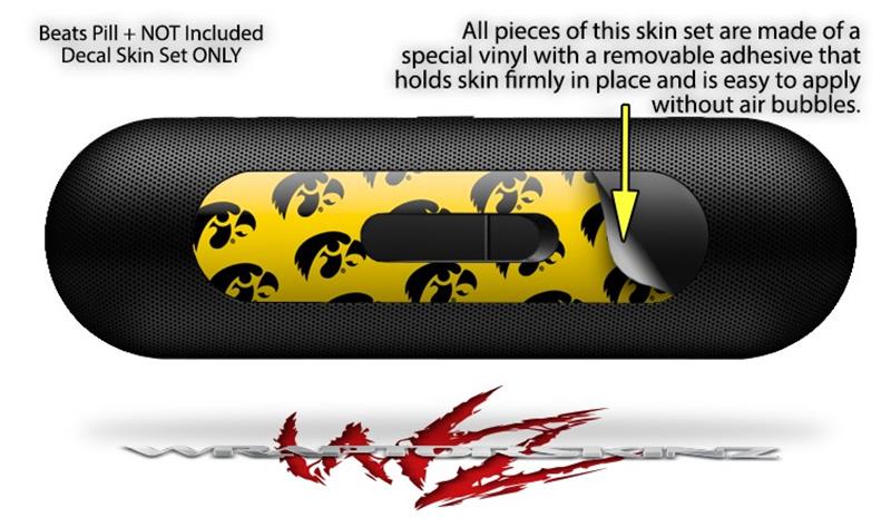 Decal Style Wrap Skin fits Beats Pill Plus Iowa Hawkeyes Tigerhawk Tiled 06 Black on Gold (BEATS PILL NOT INCLUDED)