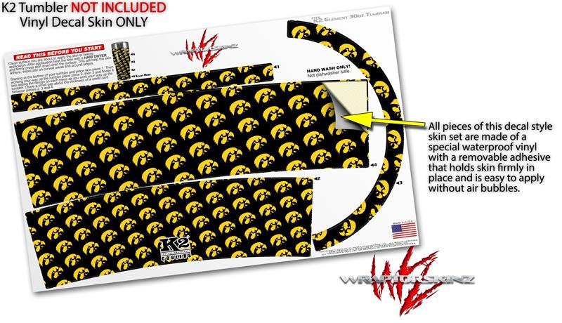 Skin Decal Wrap for K2 Element Tumbler 30oz - Iowa Hawkeyes Tigerhawk Tiled 06 Gold on Black (TUMBLER NOT INCLUDED)