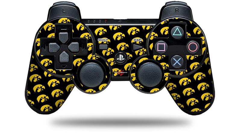 Sony PS3 Controller Decal Style Skin - Iowa Hawkeyes Tigerhawk Tiled 06 Gold on Black (CONTROLLER NOT INCLUDED)