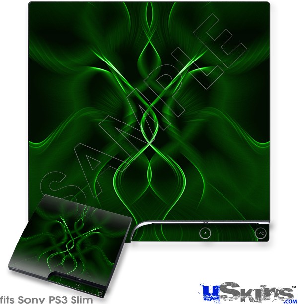 Decal Skin compatible with Sony PS3 Slim Abstract 01 Green