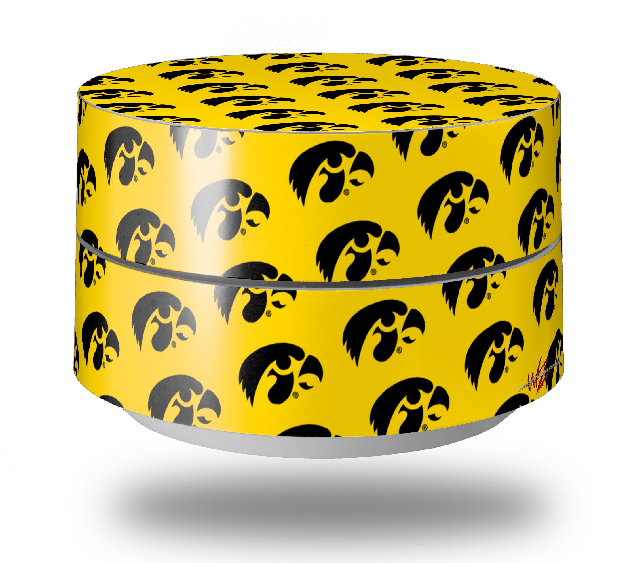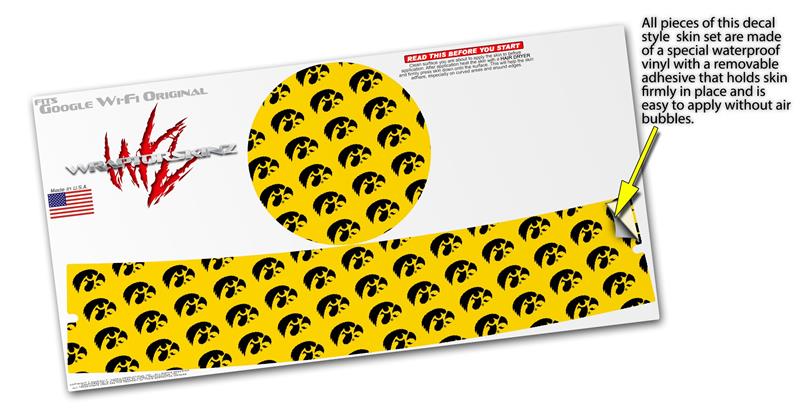 Skin Decal Wrap for Google WiFi Original Iowa Hawkeyes Tigerhawk Tiled 06 Black on Gold (GOOGLE WIFI NOT INCLUDED)