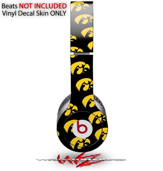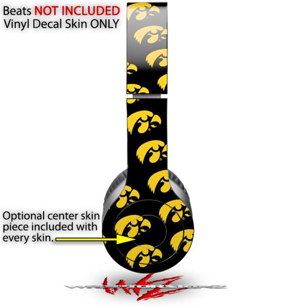 WraptorSkinz Skin Decal Wrap compatible with Beats Solo HD (Original) Iowa Hawkeyes Tigerhawk Tiled 06 Gold on Black (HEADPHONES NOT INCLUDED)