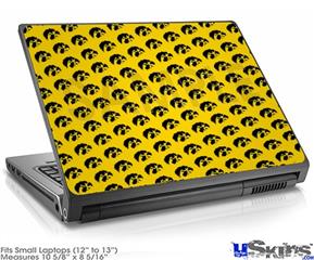 Laptop Skin (Small) - Iowa Hawkeyes Tigerhawk Tiled 06 Black on Gold