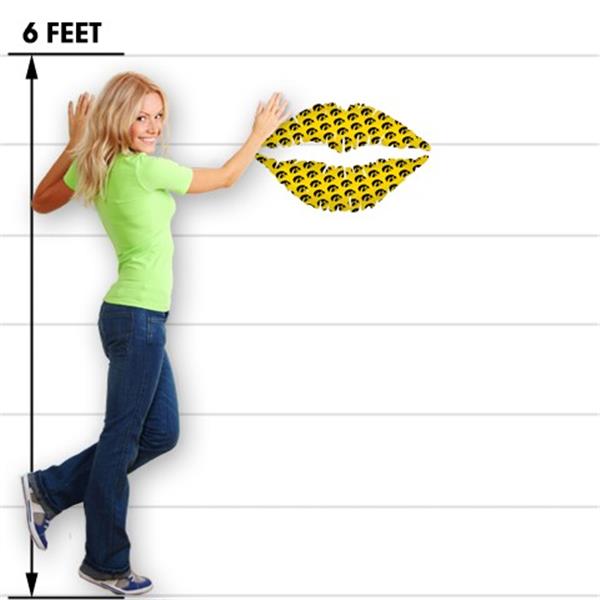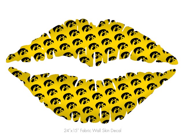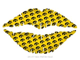 Iowa Hawkeyes Tigerhawk Tiled 06 Black on Gold - Kissing Lips Fabric Wall Skin Decal measures 24x15 inches