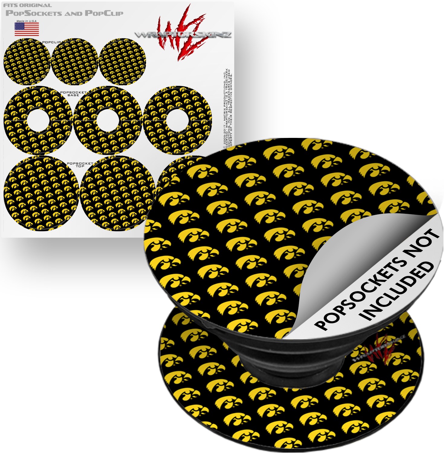 Decal Style Vinyl Skin Wrap 3 Pack for PopSockets Iowa Hawkeyes Tigerhawk Tiled 06 Gold on Black (POPSOCKET NOT INCLUDED)