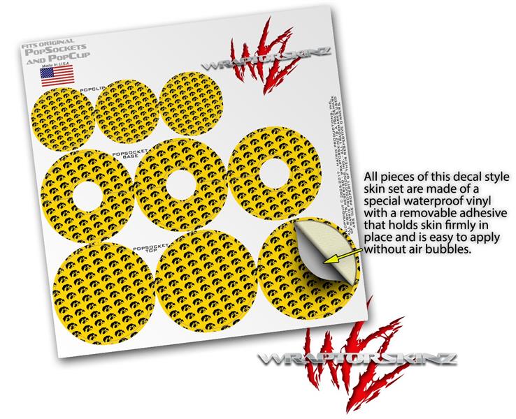 Decal Style Vinyl Skin Wrap 3 Pack for PopSockets Iowa Hawkeyes Tigerhawk Tiled 06 Black on Gold (POPSOCKET NOT INCLUDED)