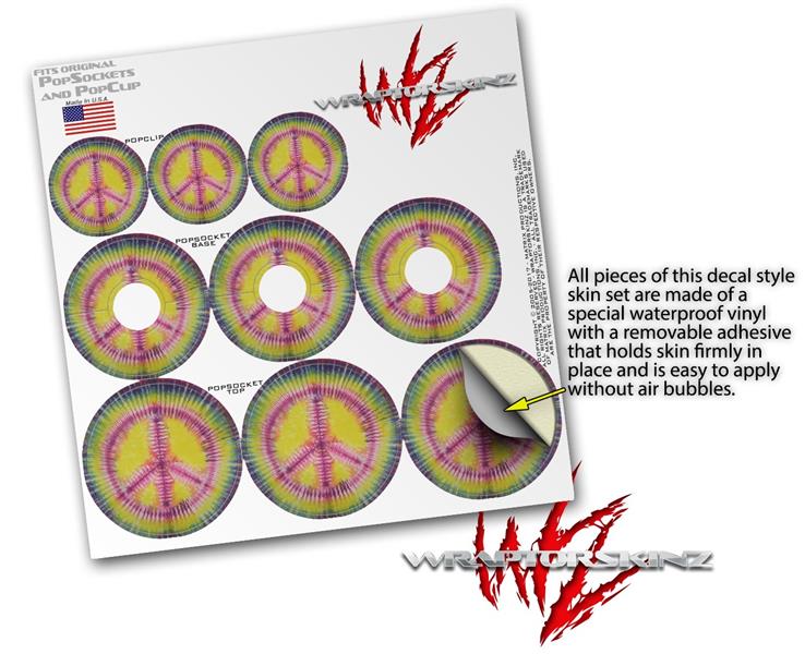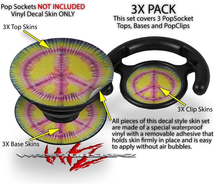 Decal Style Vinyl Skin Wrap 3 Pack for PopSockets Tie Dye Peace Sign 104 (POPSOCKET NOT INCLUDED)