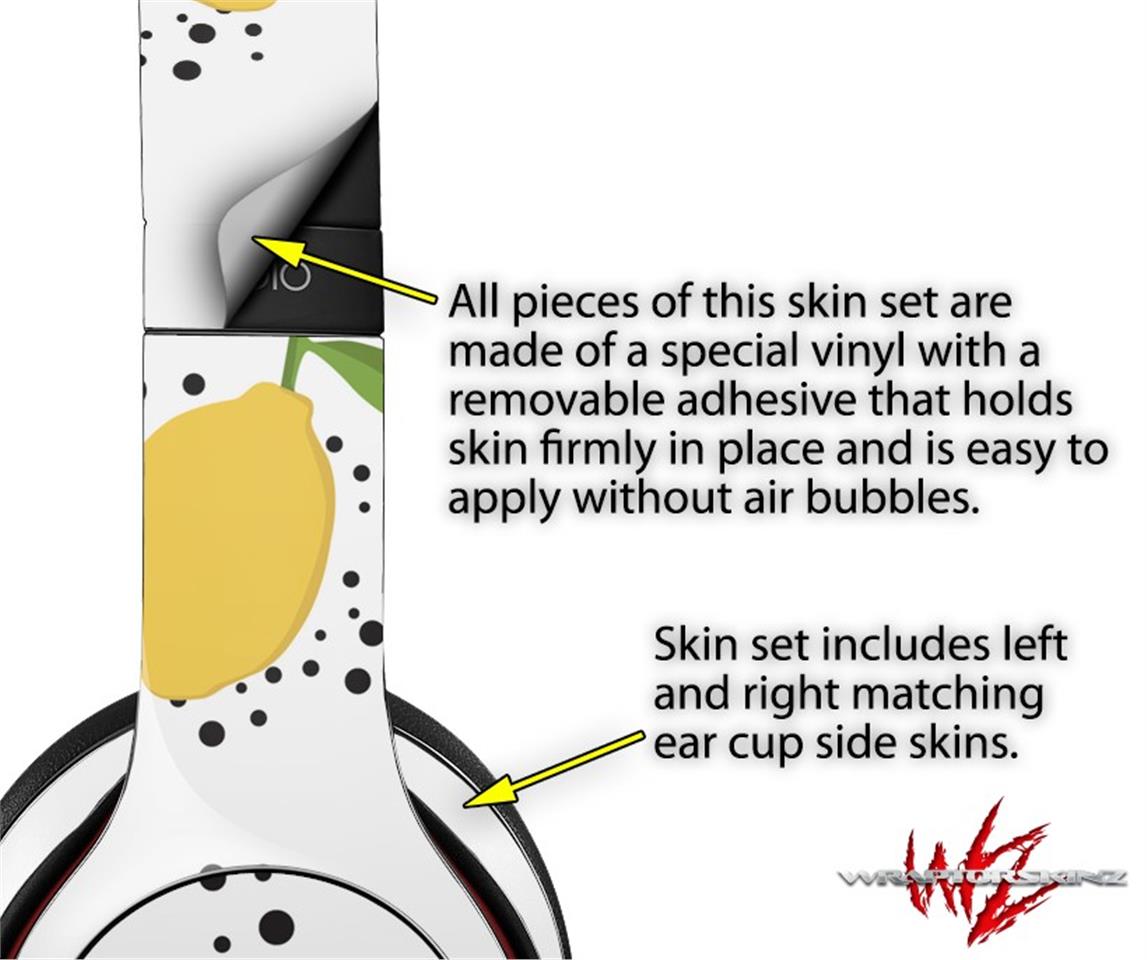 WraptorSkinz Skin Decal Wrap compatible with Beats Solo 2 and Solo 3 Wireless Headphones Lemon Black and White (HEADPHONES NOT INCLUDED)