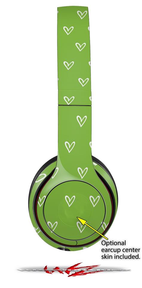 WraptorSkinz Skin Decal Wrap compatible with Beats Solo 2 and Solo 3 Wireless Headphones Hearts Green On White (HEADPHONES NOT INCLUDED)