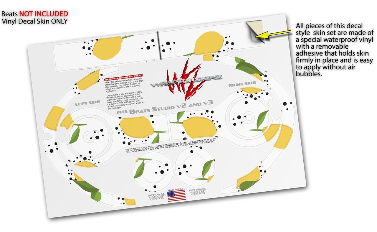 WraptorSkinz Skin Decal Wrap compatible with Beats Studio 2 and 3 Wired and Wireless Headphones Lemon Black and White Skin Only (HEADPHONES NOT INCLUDED)