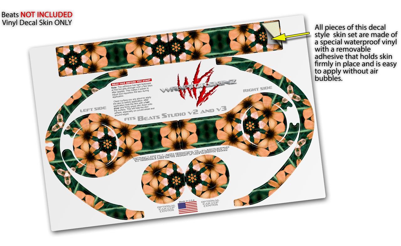 WraptorSkinz Skin Decal Wrap compatible with Beats Studio 2 and 3 Wired and Wireless Headphones Floral Pattern Orange Skin Only (HEADPHONES NOT INCLUDED)
