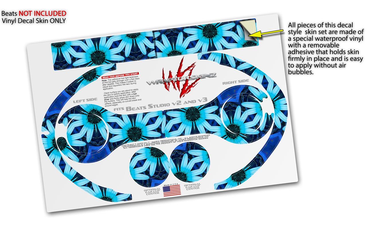 WraptorSkinz Skin Decal Wrap compatible with Beats Studio 2 and 3 Wired and Wireless Headphones Daisies Blue Skin Only (HEADPHONES NOT INCLUDED)